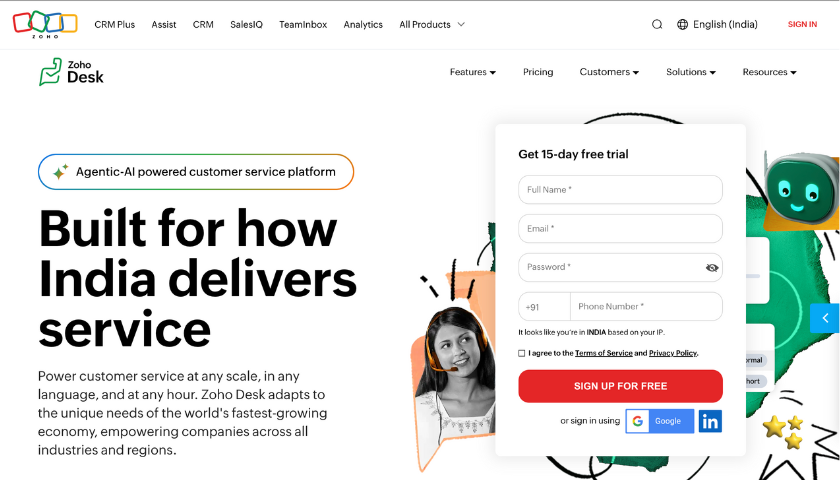 Launched in 2016, Zoho Desk is made to help businesses put the customer first. It gives tools for all-channel ticket management, AI-powered help, self-help, automation, and reporting.