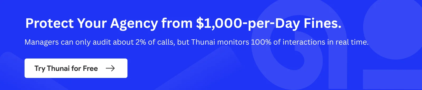 - By using its Brain to ingest the latest 2026 CMS guidelines, the system performs a Gap Analysis on 100% of your agency's calls. While human managers can only listen to about 2% of calls, Thunai audits every single interaction, scoring them against the CMS call recording requirements.