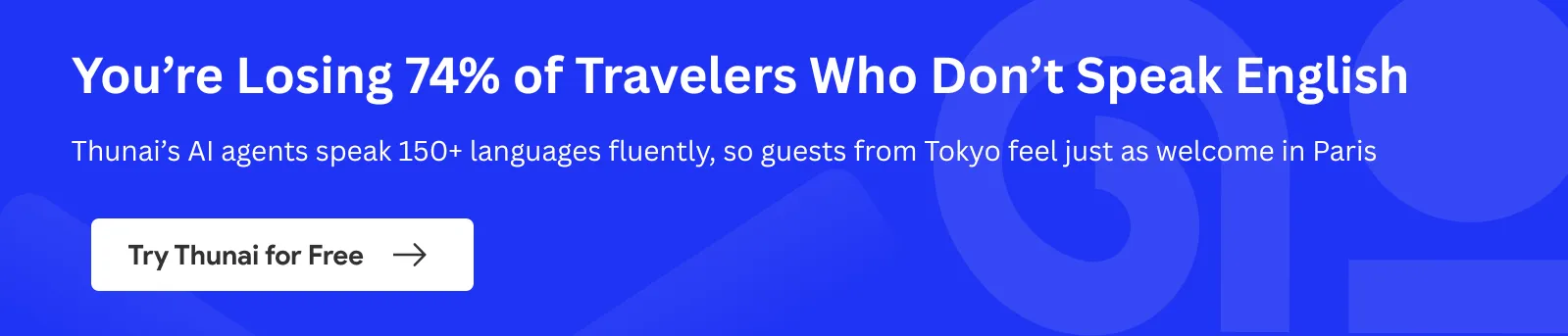 - Thunai offers human-like voice and chat agents in over 100 languages, ensuring that a guest from Tokyo feels as welcome in Paris as a local would.