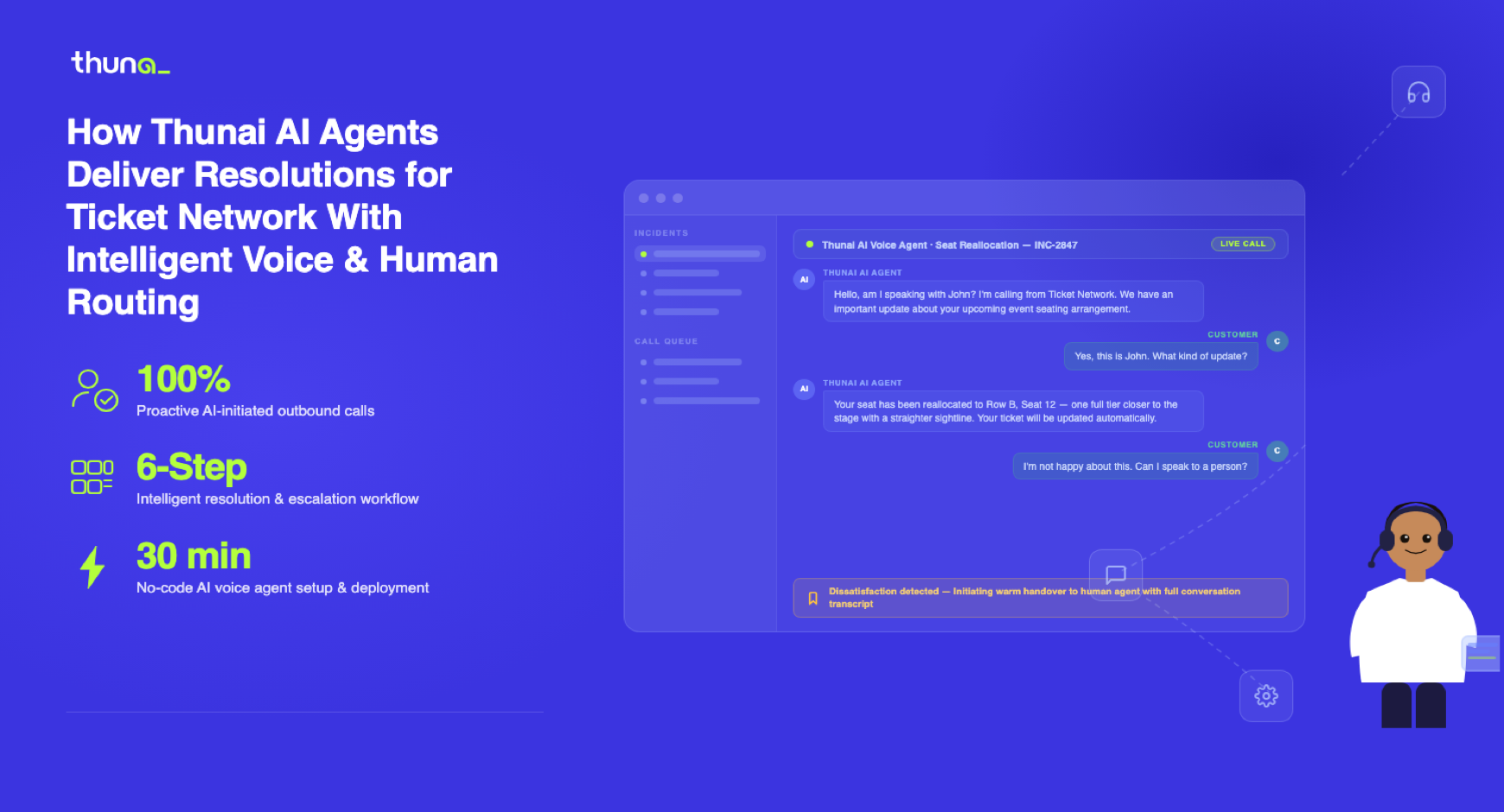 How Thunai AI Agents Deliver Resolutions for Ticket Network With Intelligent AI Voice and Human Call Routing