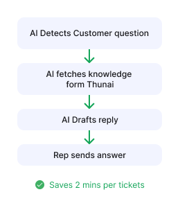 Live AI assistance that empowers your reps with instant answers, smart suggestions, customer conversation history and contextual insights to resolve issues faster.
